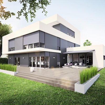 Die Schacht-System-Markise integriert sich unauffällig in bereits vorhandene Schächte, Blenden, Aufsetzoder Ziegelkästen. Die Montage kann nach Fertigstellung der Fassade erfolgen und ermöglicht eine saubere Gewerketrennung. Die Befestigung erfolgt einfach und effizient über die Führungsschiene.